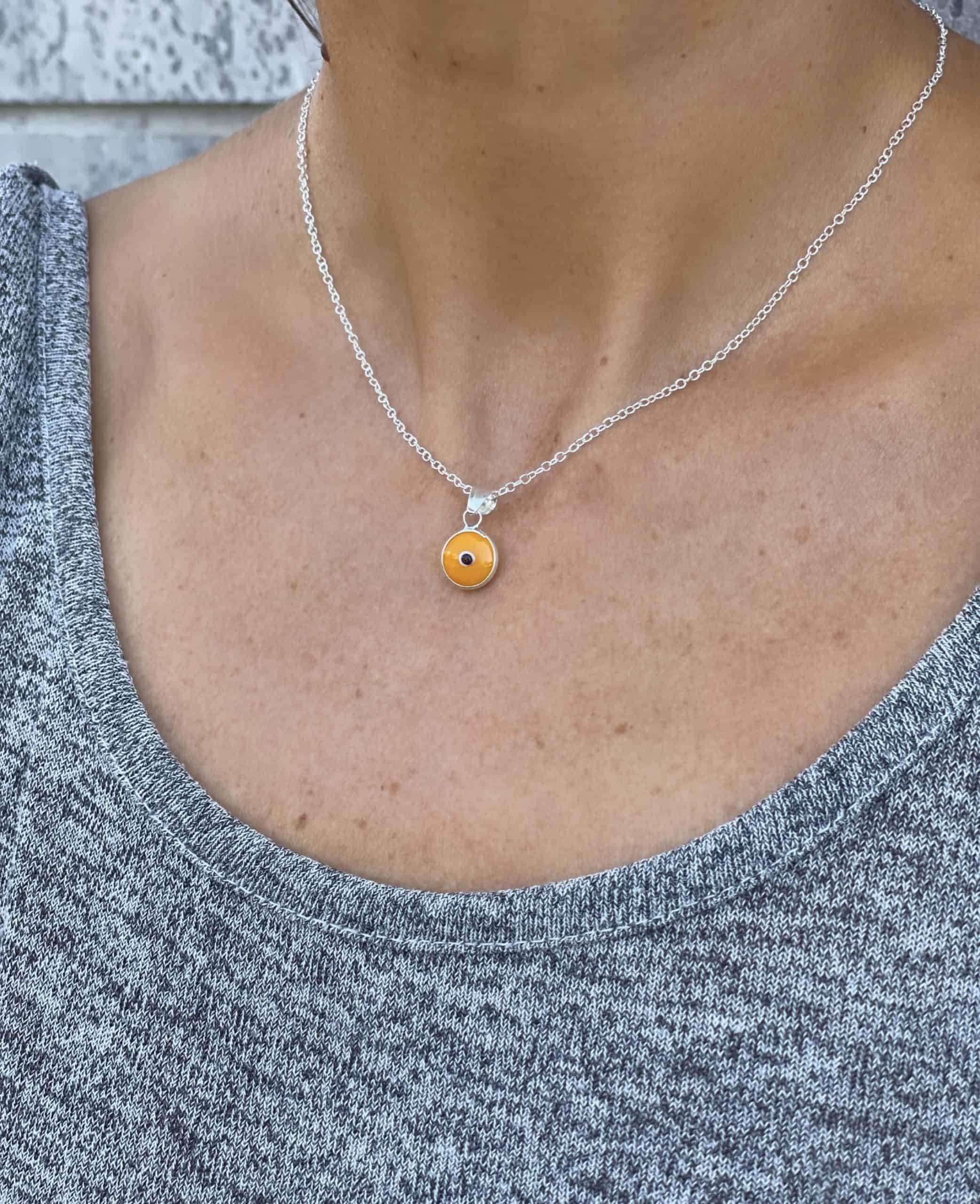 שרשרת כסף 925 עם תליון עין בצבע כתום.