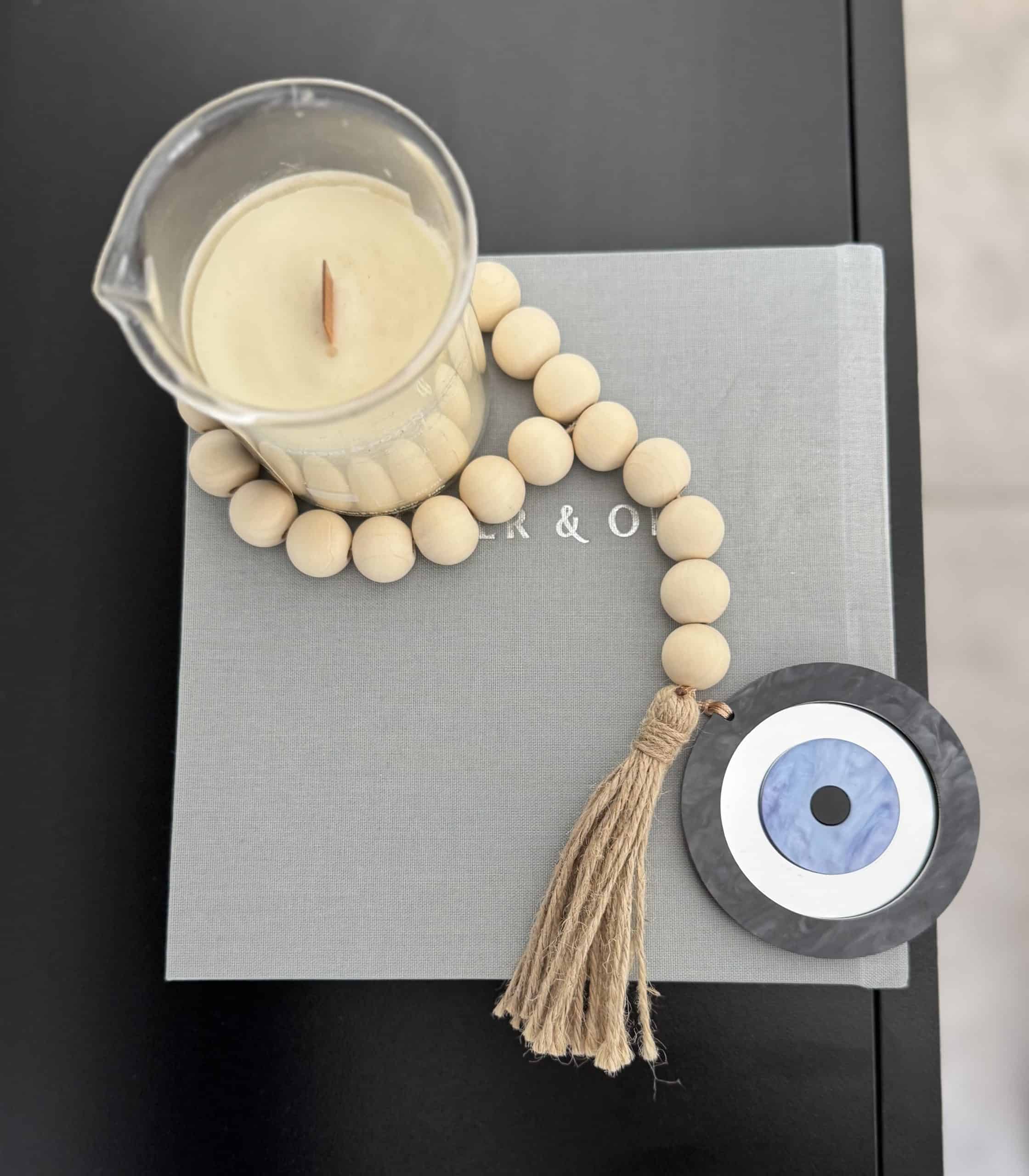 תליון דקורטיבי ייחודי בעיצוב טבעי עם קמע עין בצבעים עדינים המשדרים תחושבת הרמוניה ושלווה