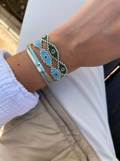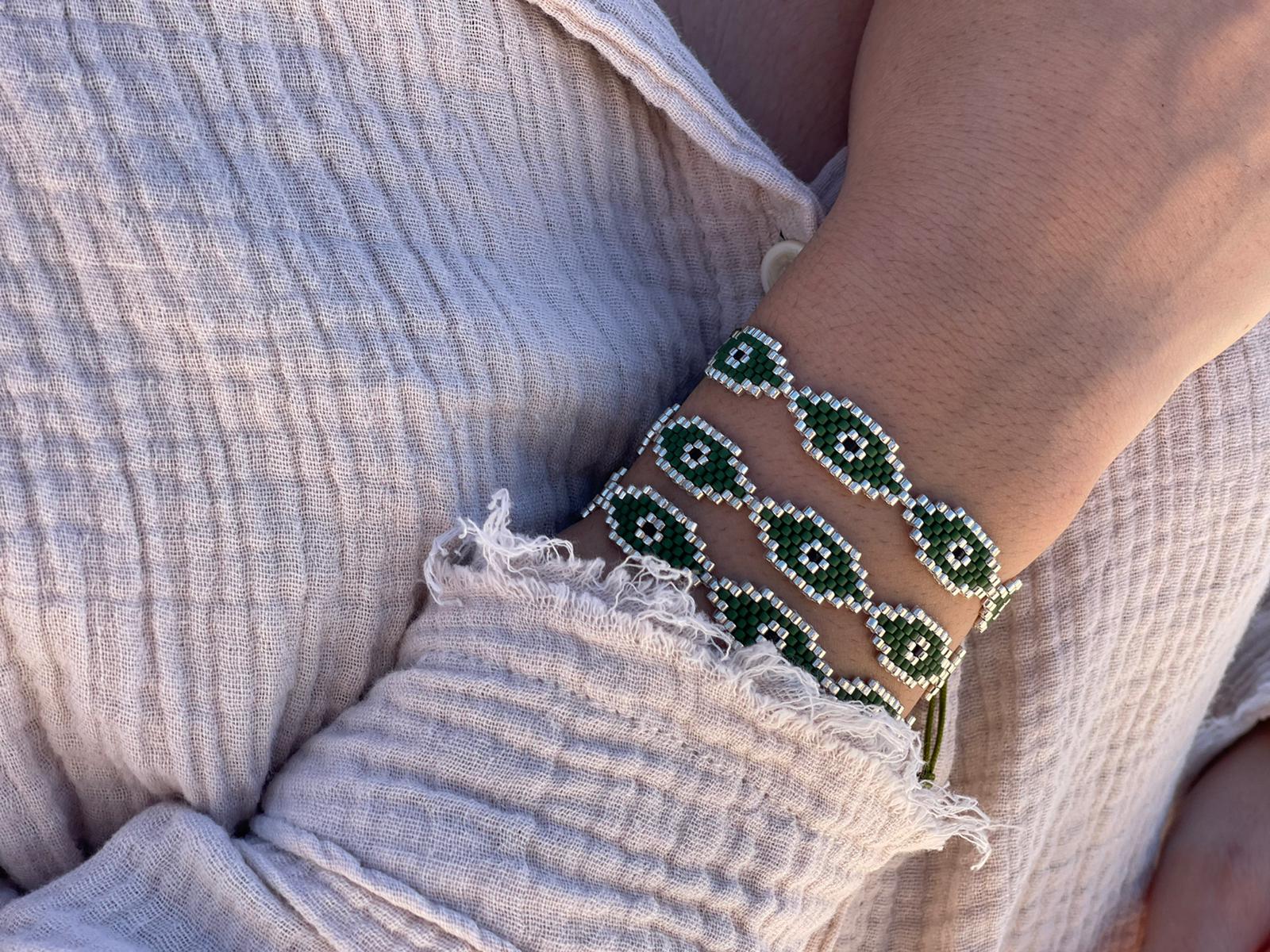 צמיד עיניים, נעשה בעבודת יד איכותית על ידי שזירה של חרוזי מיוקי.