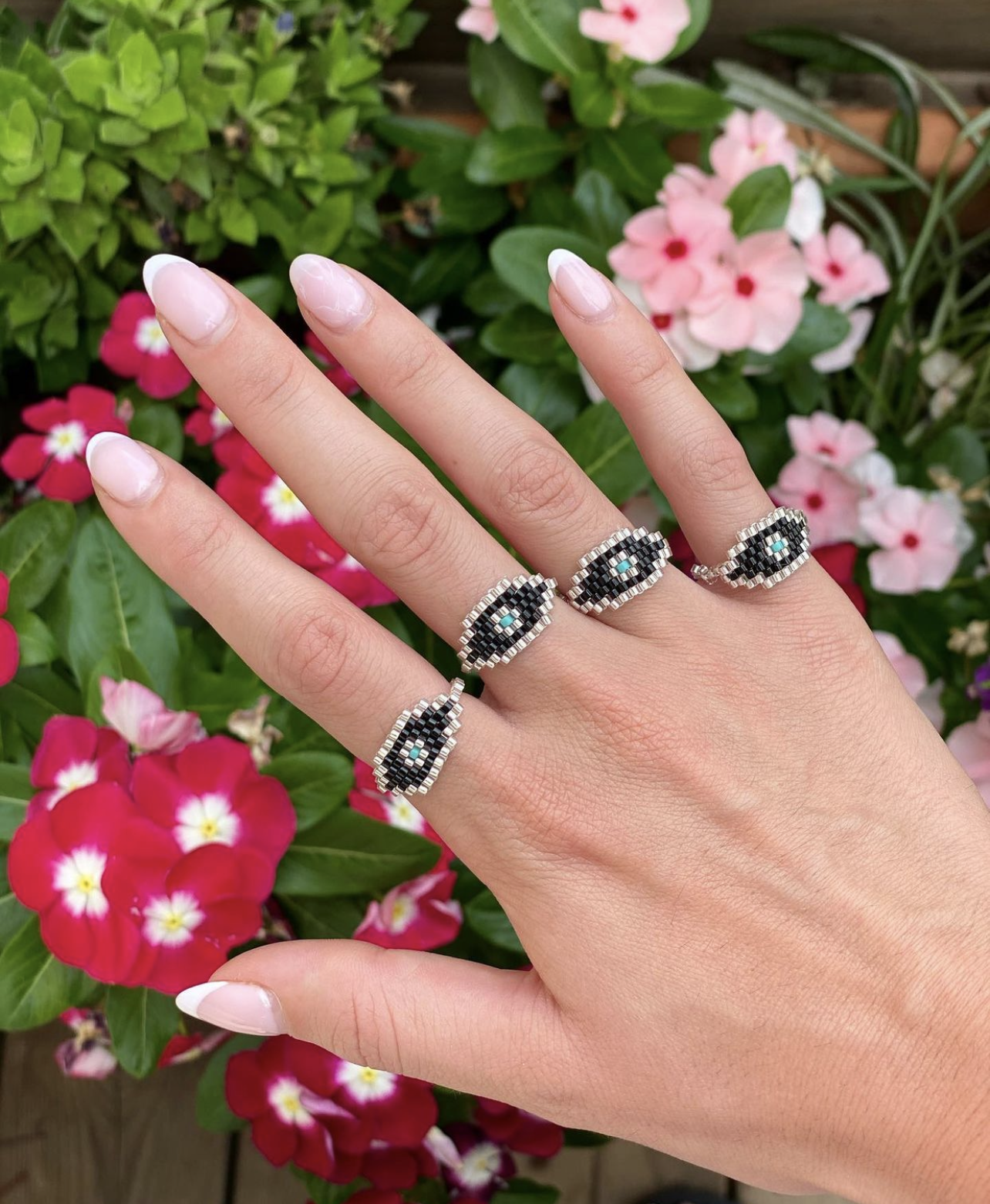 טבעת עין, עשויה בעבודת יד איכותית על ידי שזירה של חרוזי מיוקי.